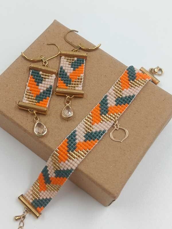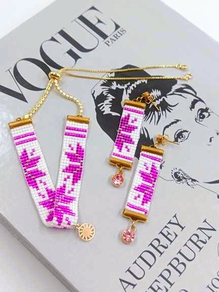 دستبند دست ساز میوکی اصل ژاپن با پلاک طلا دو طرفه طرح پلنگی قرمز Miyuki gold
