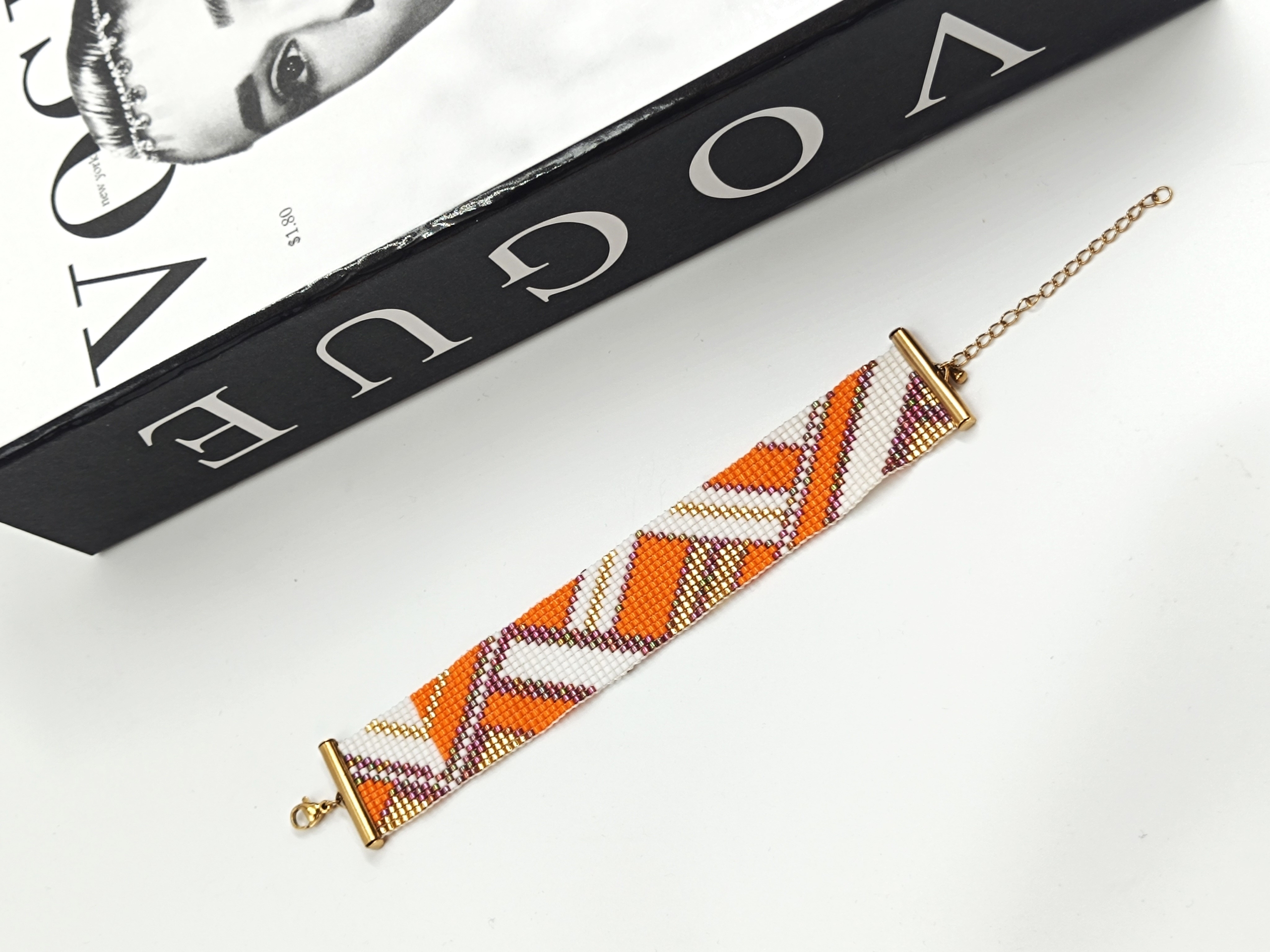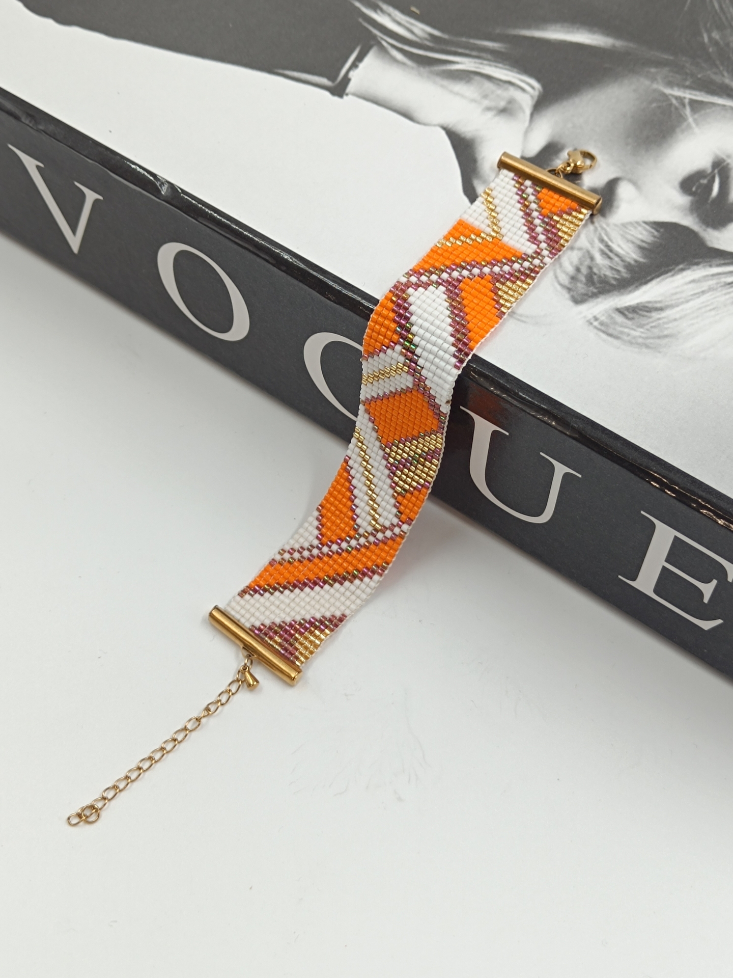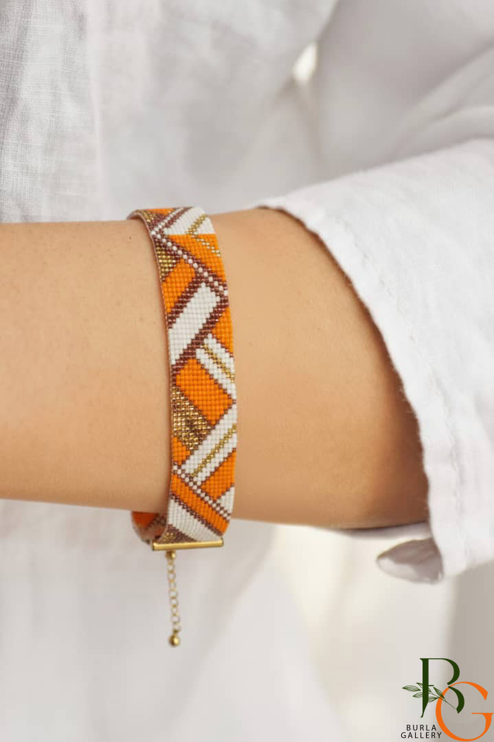 دستبند دست ساز میوکی اصل ژاپن طرح پاییزی پهن Miyuki gold
