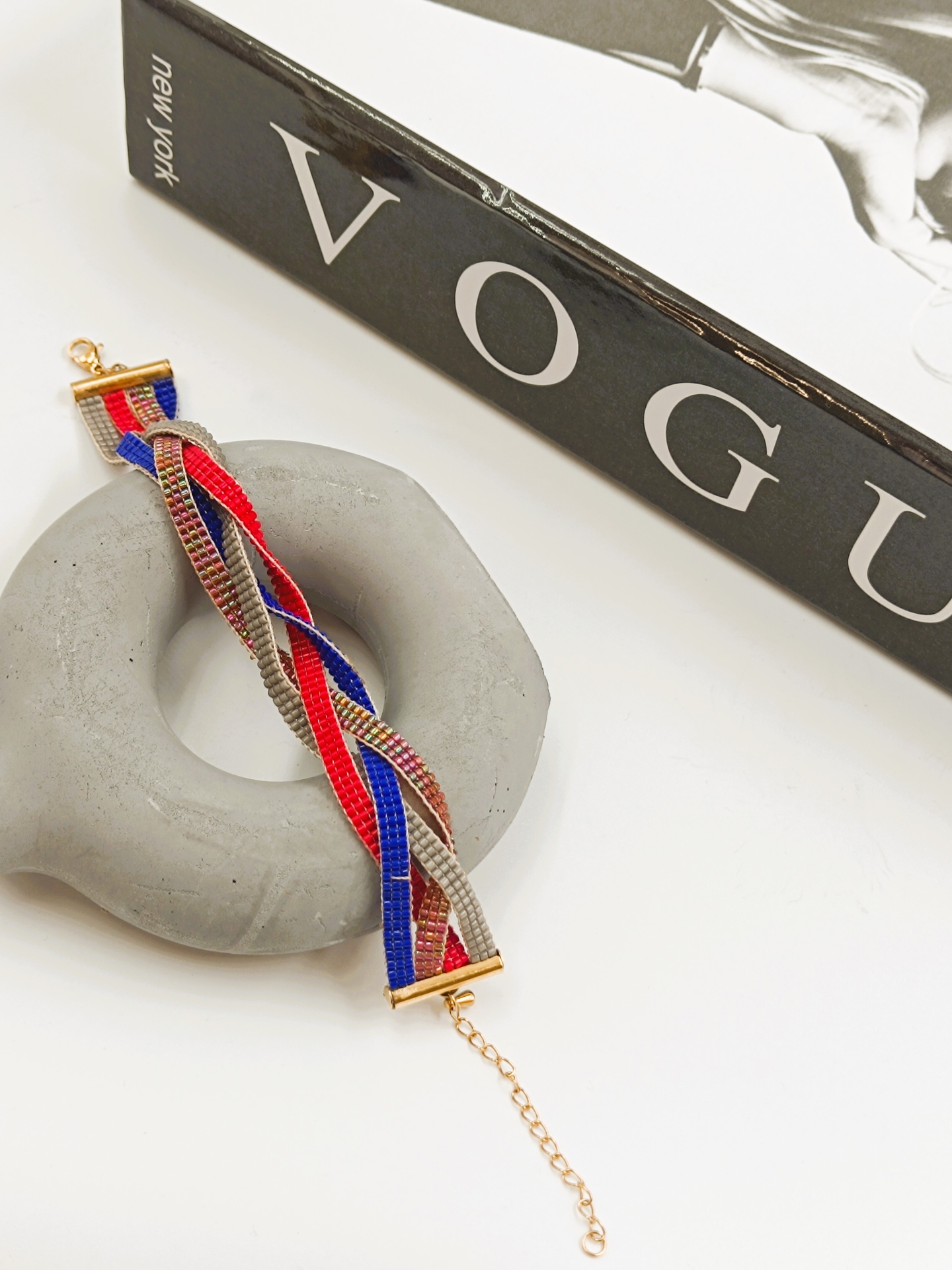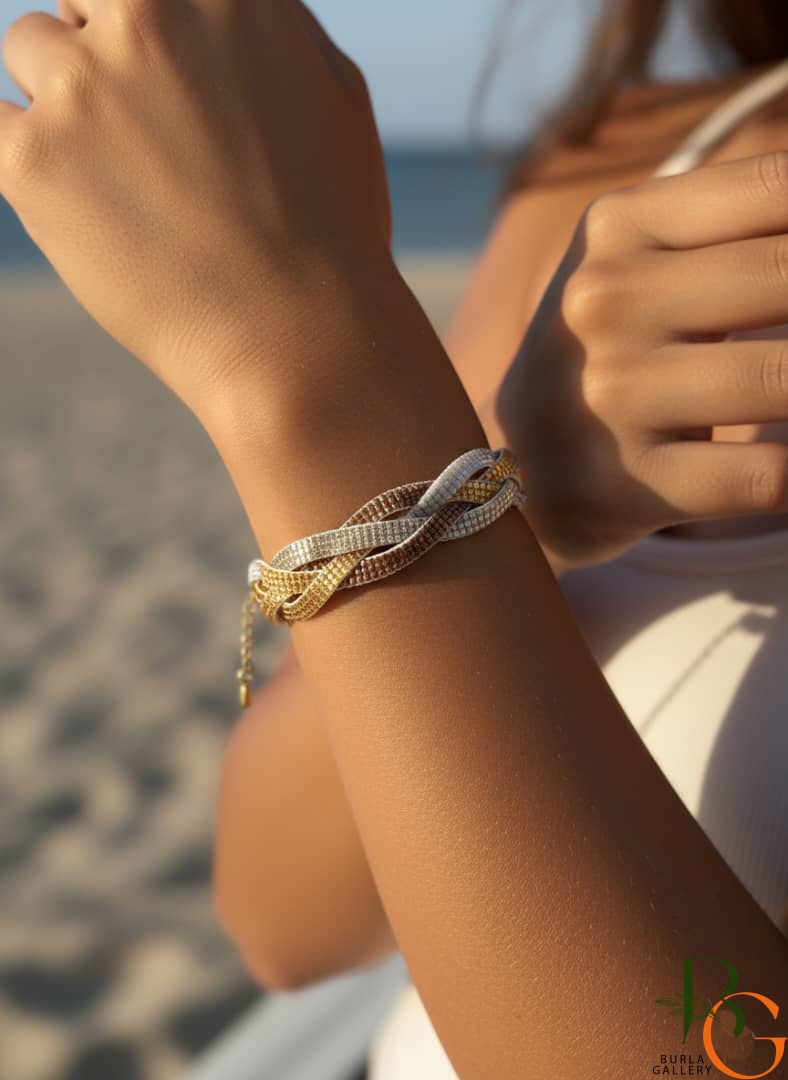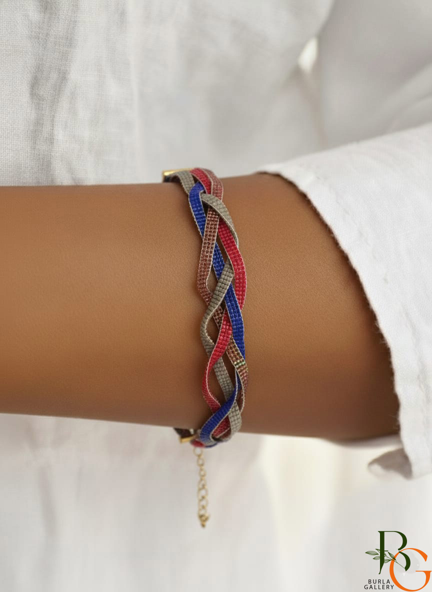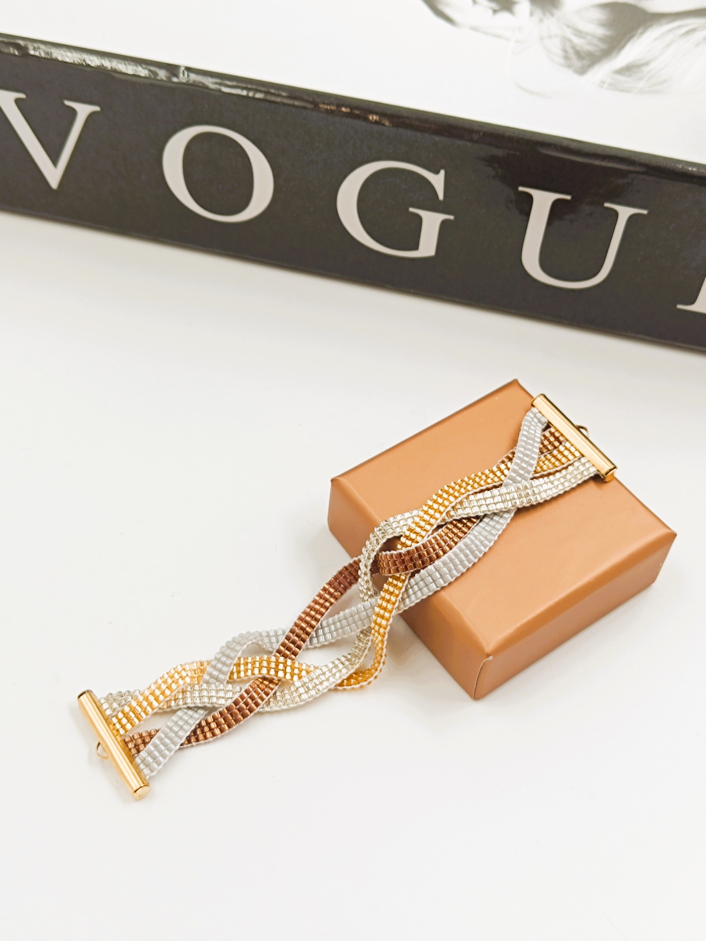 دستبند دست ساز میوکی اصل ژاپن طرح بافت پاییزی 4 ردیفه Miyuki gold