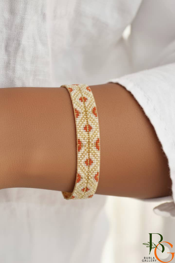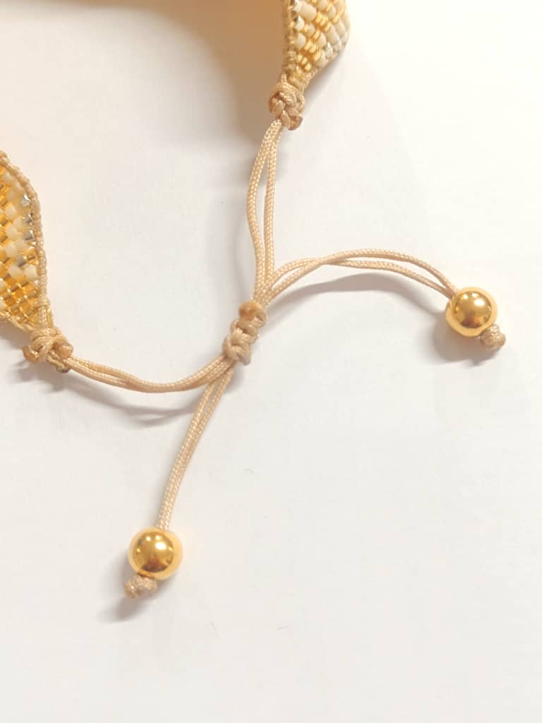 دستبند دست ساز میوکی اصل ژاپن طرح پاییزی لوزی Miyuki gold