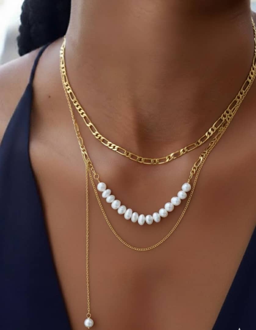 گردنبند ژوپینگ اصل سه لاین با ابکاری طلا و مروارید پرورشی بدون تغییر رنگ 3998