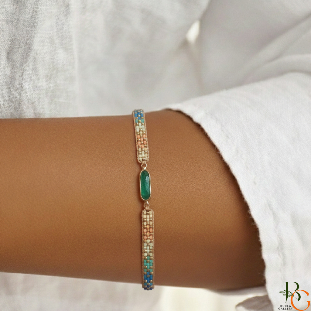 دستبند دو طرفه دست ساز میوکی اصل ژاپن با پلاک سبز یلدایی Miyuki