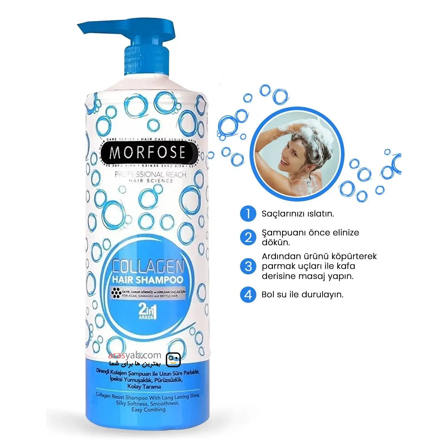 شامپو کلاژن مورفوس اصل تقویت و ترمیم مو 2 در 1 Morfose Shampoo