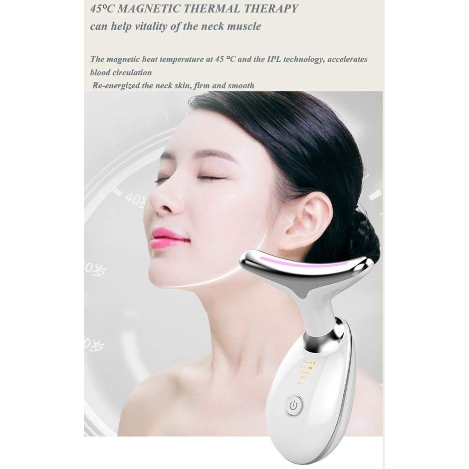 یک دستگاه هوشمند چند منظوره است که با عملکرد نور درمانی و ایجاد پالس الکتریکی به رفع غبغب و کاهش چین و چروک و همچنین رفع لک های پوست کمک می نماید. این ماساژور صورت غبغب را از بین می برد چین و چروک ، خطوط ریز را کاهش می دهد و از ایجاد علائم پیری پوست جلوگیری می کند. دستگاه ماساژور حرارتی با استفاده از فناوری IPL ، تحریک الکتریکی و ایجاد ویبره عضلات پوست را سفت می کند و باعث لیفت صورت می شود و فرم صورت را به خوبی اصلاح می نماید.